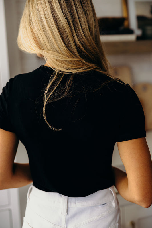 SHORT SLEEVE RIBBED TEE IN BLACK