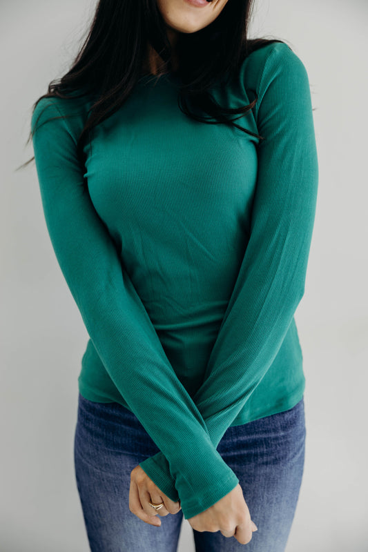 HIGH NECK LONG SLEEVE TEE IN ASPEN GREEN