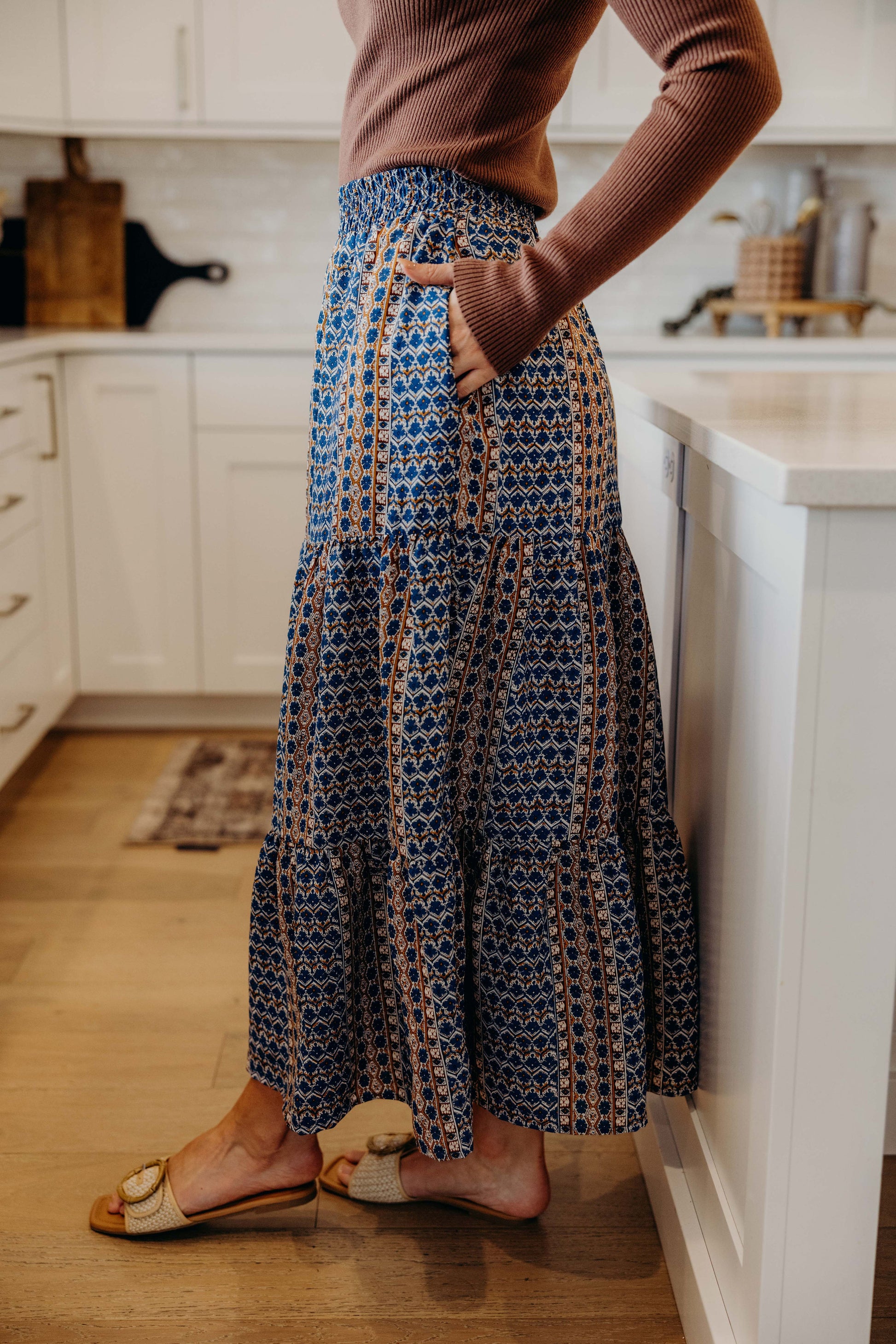 TIERED MAXI SKIRT IN MOROCCAN SPICE