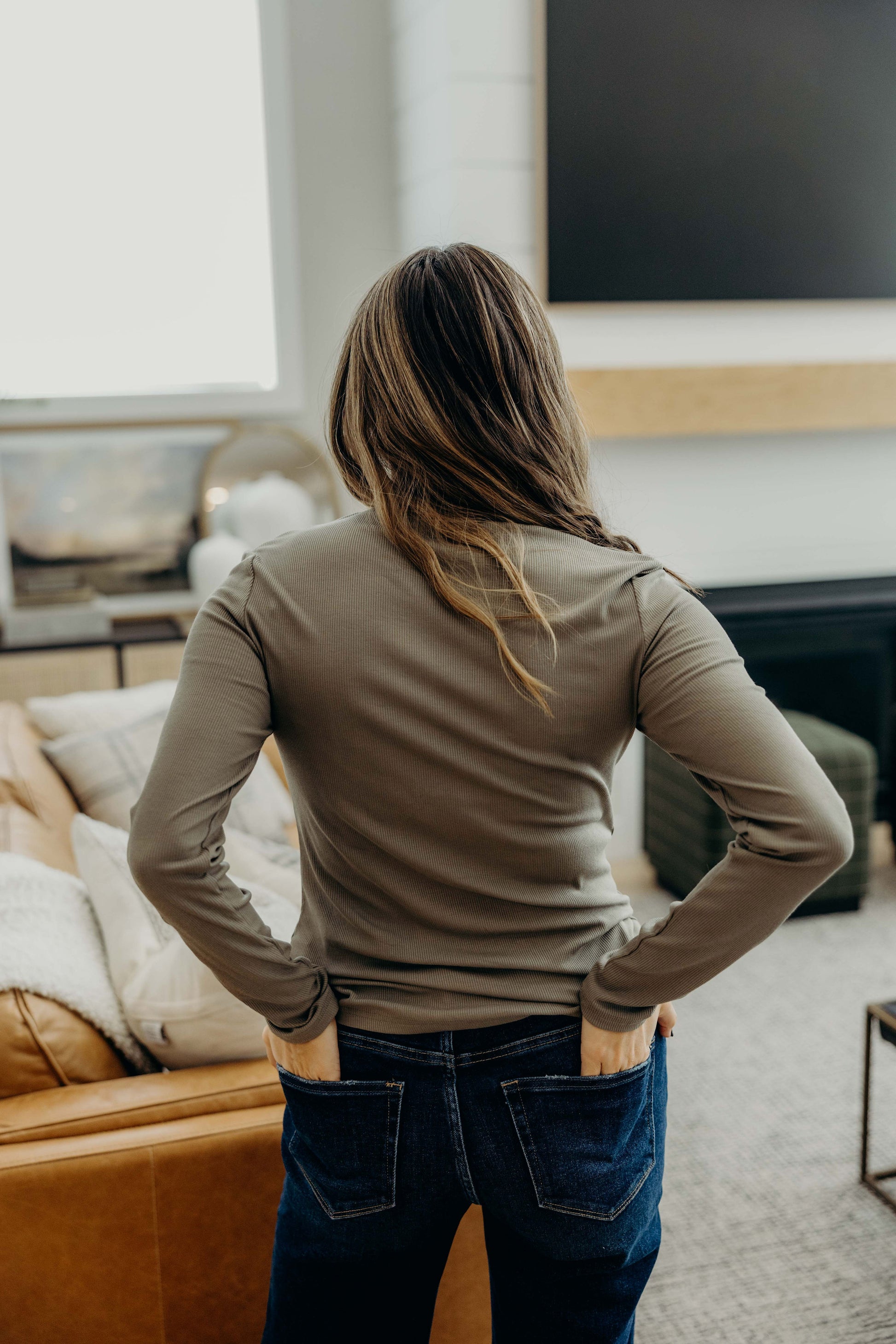 HIGH NECK LONG SLEEVE TEE IN CLOVE