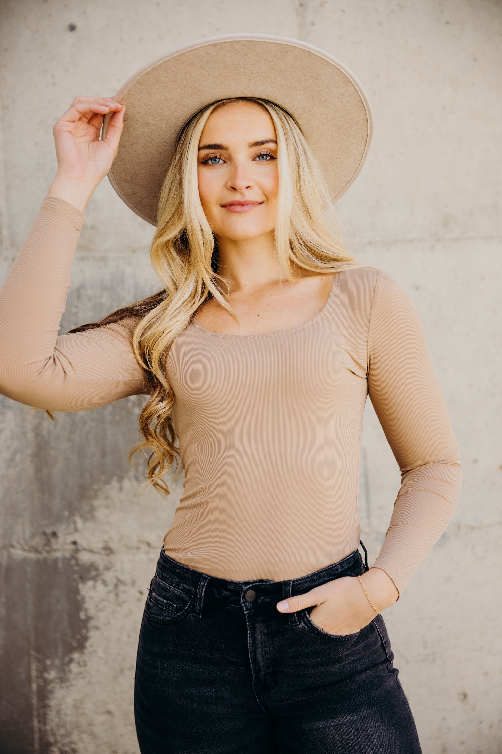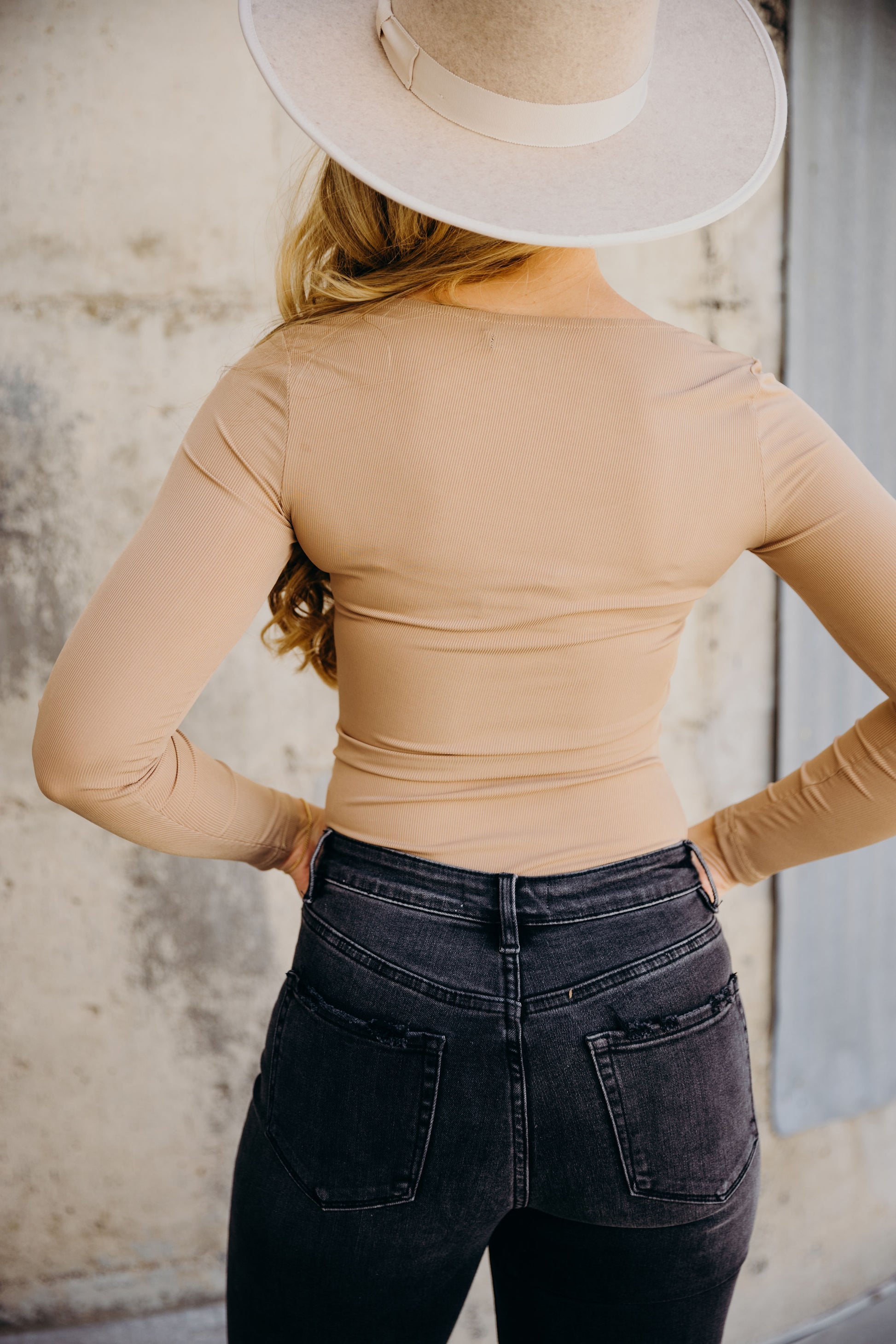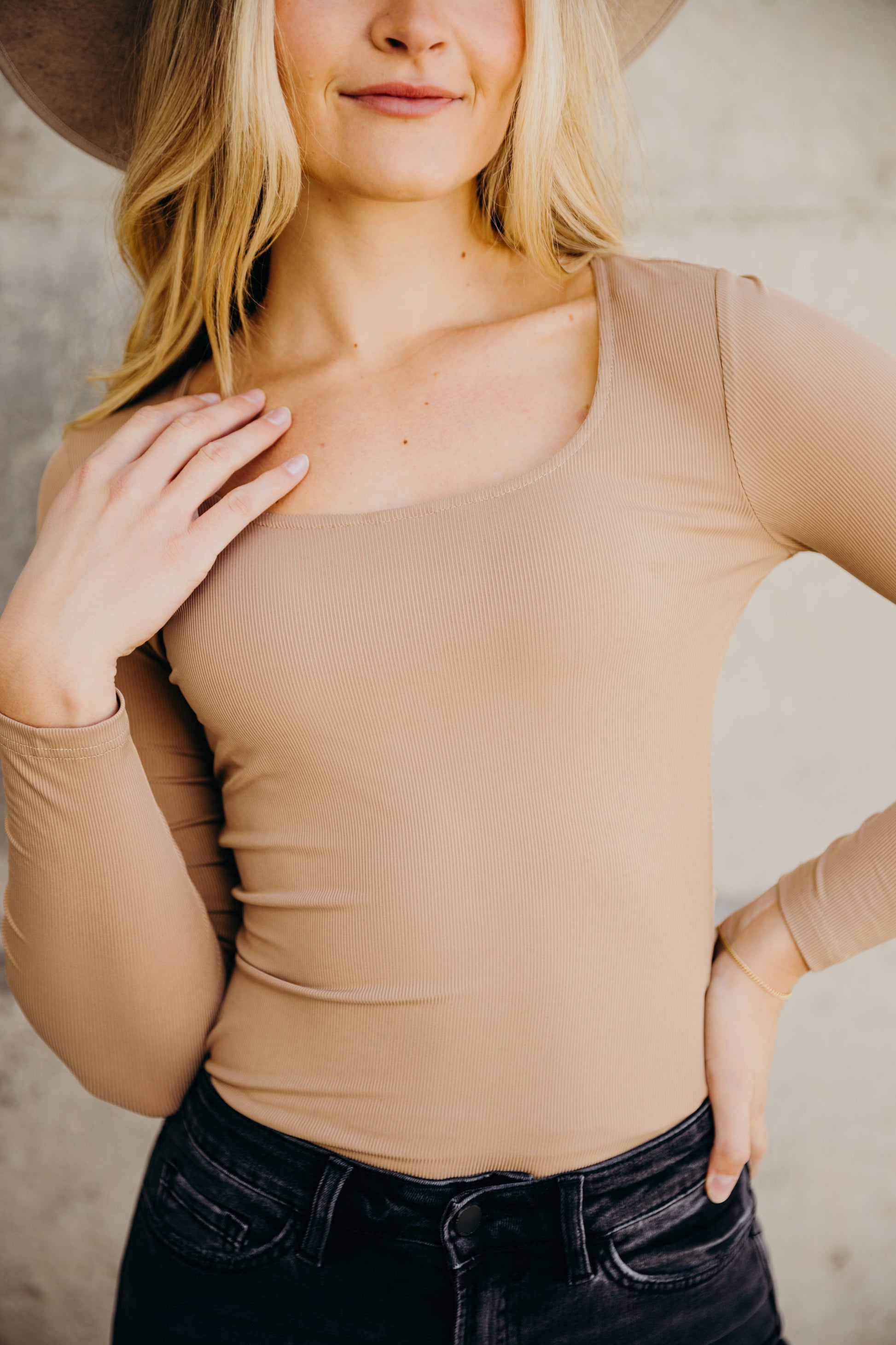 RIBBED LONG SLEEVE BODYSUIT IN NUDE FINAL SALE