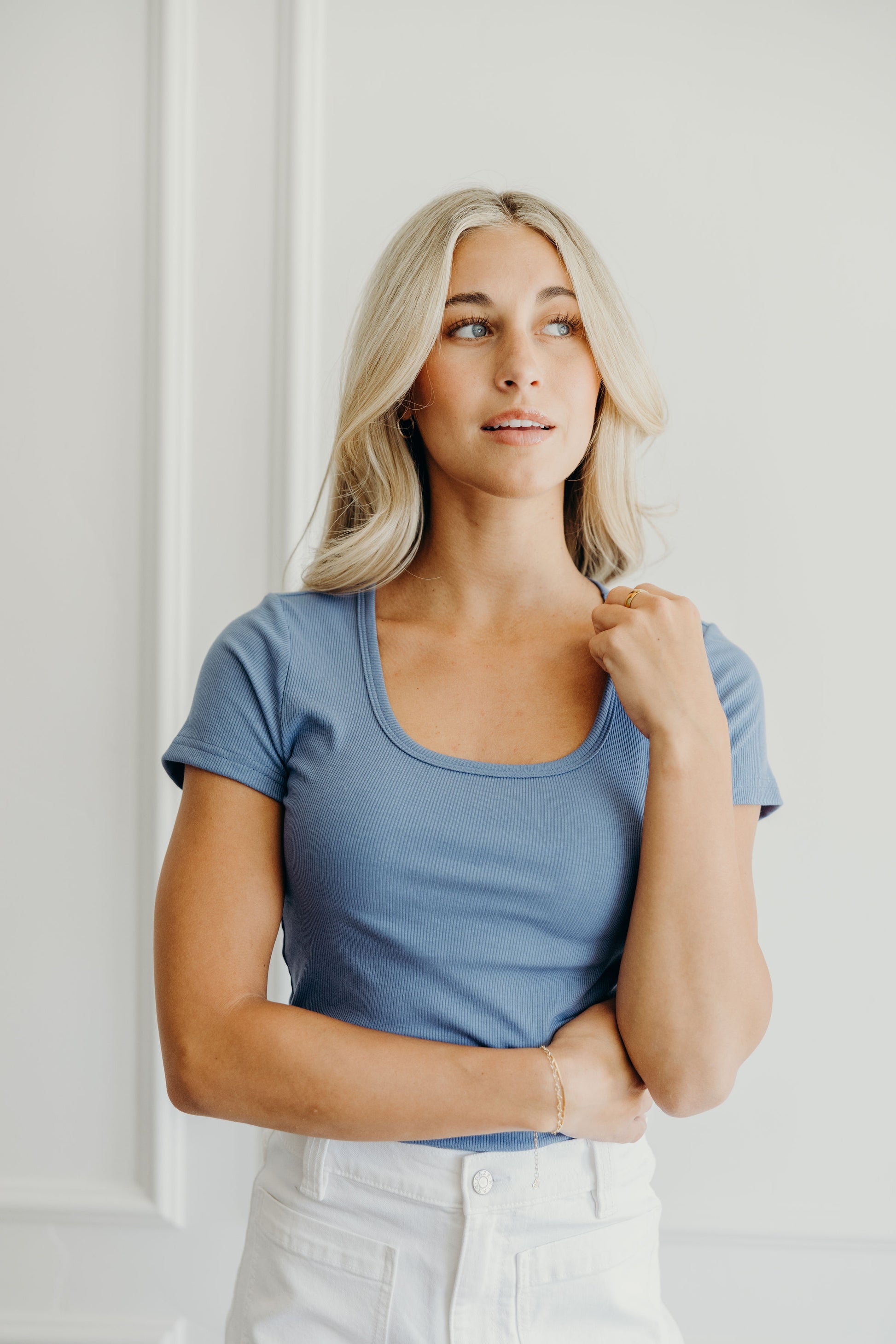SHORT SLEEVE SCOOP TEE IN DUTCH BLUE